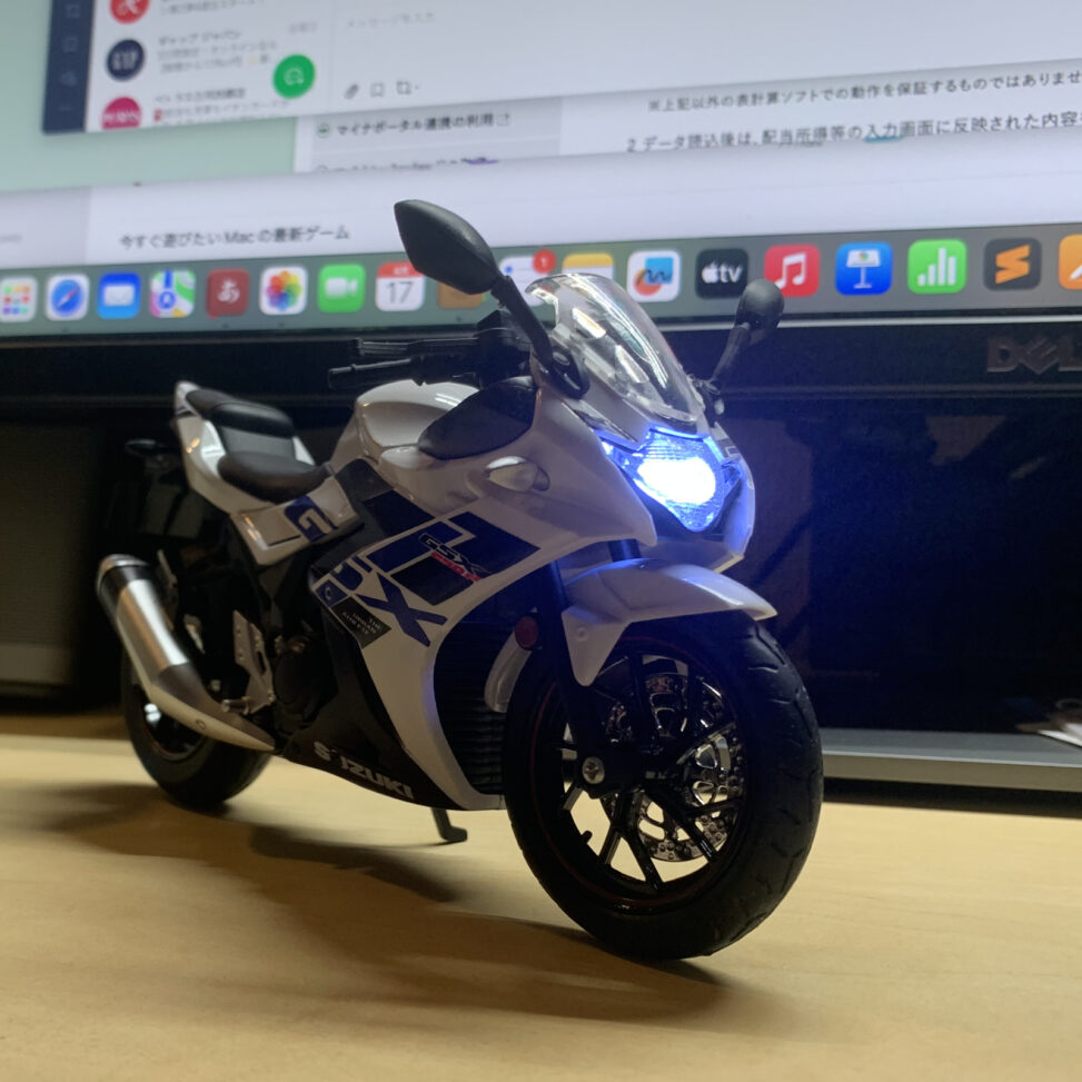 NinjaかGSXに絞られたんだけど、結論はGSX250Rになりました。単眼のデザインが気に入っていたのと、ロングストロークエンジンでトコトコ走る感じが良かったので。音もちょっとくぐもった低音マシマシな感じで好みでした。250の選び方見ると結局「見た目で選ぶのが正解。どれを選んでも後悔することはありません。」的なことが書いてあったので、見た目で選びました。特に白いやつが好みだったので白いGSXに。白いバイクってありそうであんまりないんですよね。大体赤か黒。カワサキさんは緑。ヤマハさんは青。GSXはエクスターカラーのブルーが多いですけど、自分的にはパスでした。全赤があったらそれにしてたんだけど、そのカラーリングは現行ないんですよ。